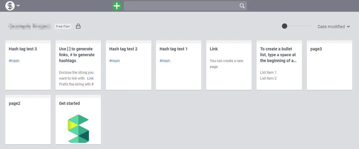 ① Create Page: Click the ”+” button at the top center of the screen to create a new page in the project. In the page, you can type text and it will be saved automatically.