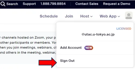 - Go to the UTokyo Zoom page (please note that this is a Zoom sign-in page for UTokyo members only and is not the regular Zoom sign-in page).