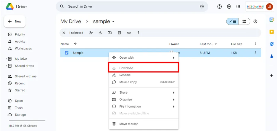 2. Please right-click the file (or folder) you wish to download and select “Download” in the context menu that appears.