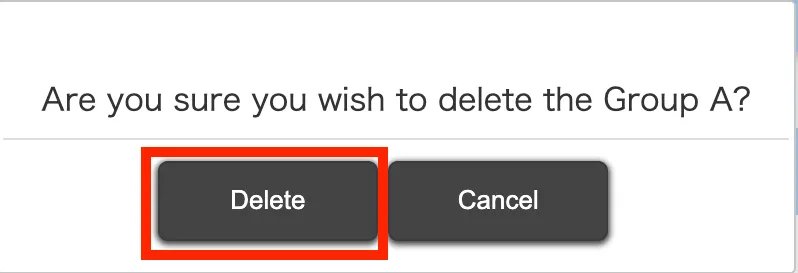 The message “Are you sure you wish to delete (user group name)?” will be displayed. Please check that the target group is correct and click the “Delete” button.