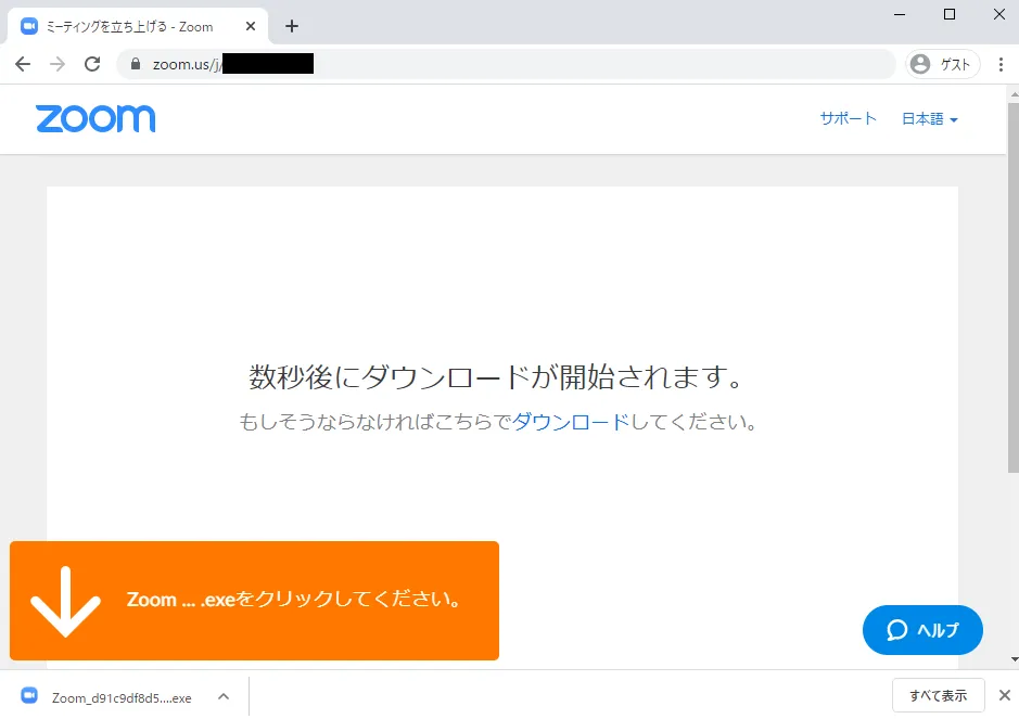 If Zoom is not installed yet, the following screen will appear and the download will automatically start. If it does not start, you can download it by clicking on the download link. Start Zoom installation using the file downloaded.