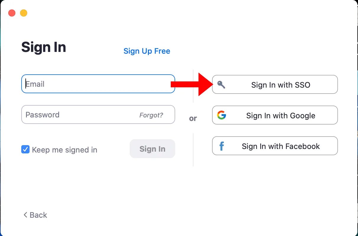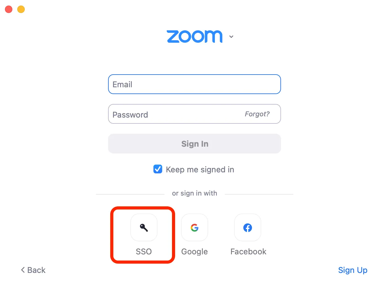 - On the Zoom sign-in page, press “SSO”, or “Sign in with SSO”. (Signing in with UTokyo Account email address and password via Zoom App is unavailable.)