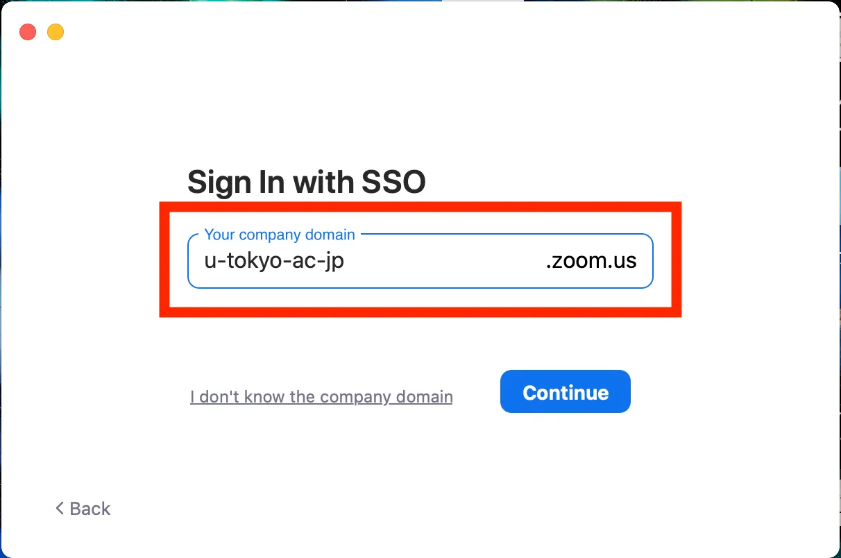 u-tokyo-ac-jpin the “Company Domain” field. (Note thatacis preceded and followed by a hyphen, not a period.)
