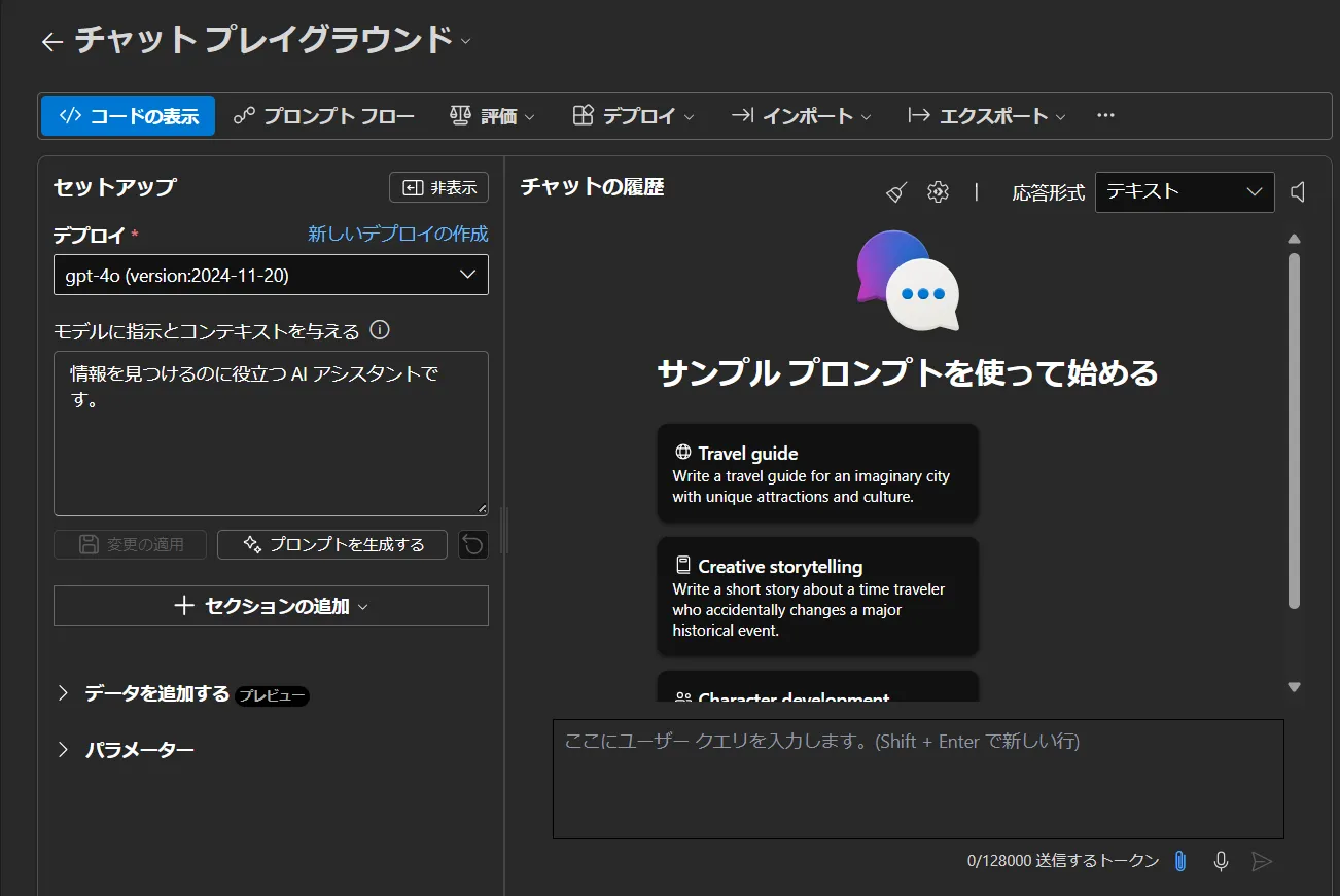 - 下図のようなチャットプレイグランドが表示されたら完了です.
