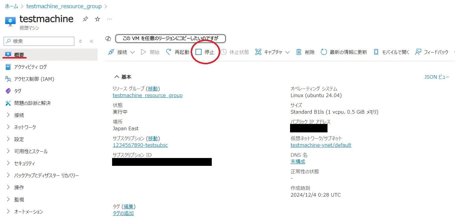haltやshotdownを実施してもマシンは停止しますが,Azure Portal のリソース上は起動したままの表示になっていますので,改めて起動したい場合は再起動をクリックしてください.