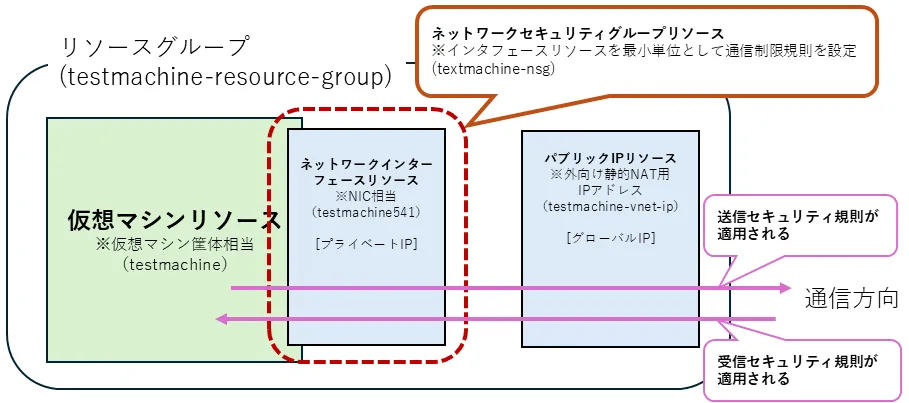 ネットワークセキュリティグループは,仮想マシンが通信するために必要なネットワークインターフェースリソース単位で設定し,以下の要素で通信を制御します.