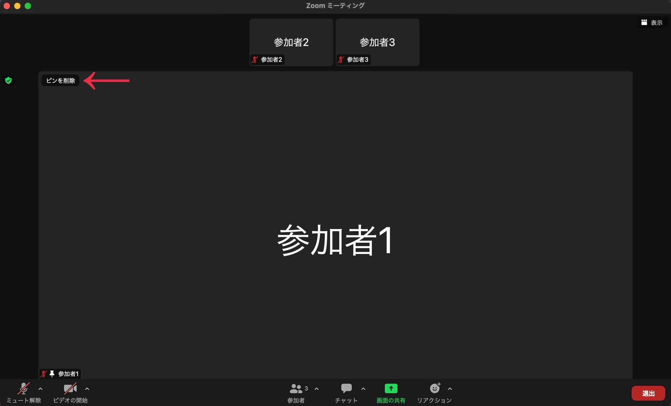 ※この機能はホスト自身の画面だけでなく,参加者全員に影響を与える設定です.また,スポットライトがONの場合には参加者はピン留めが使用できません.